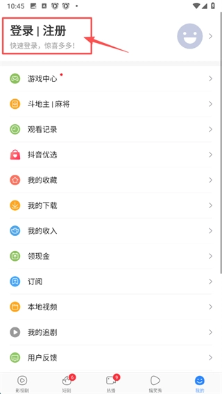 在个人中心页面,点击“登录|注册”区域,即可进入登录方式选择界面。