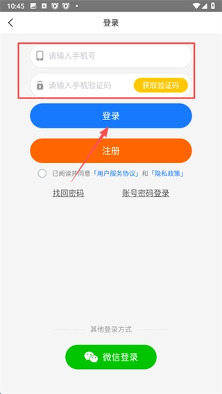 输入手机号码与验证码后,点击登录按钮,即可完成账号登录流程。
