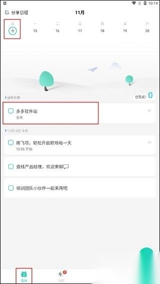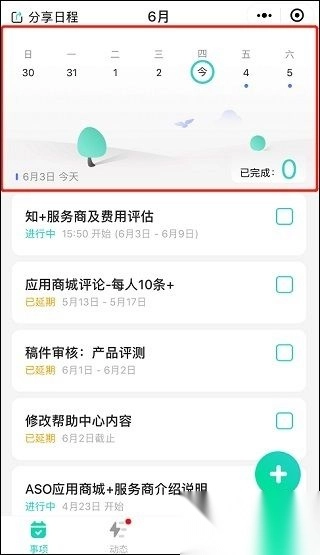创建事项完成后,就会出现在设置的开始时间日期内。