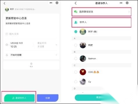 选择协作人时,可从曾共同参与过事项或会议的好友中挑选,这些好友会自动成为协作人。新创建的事项会通过【飞项】公众号向协作人发送通知(建议提前关注该公众号),同时也会展示在动态列表里。