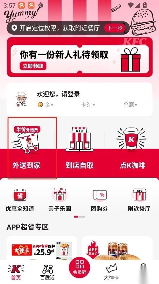 点击首页的外送到家