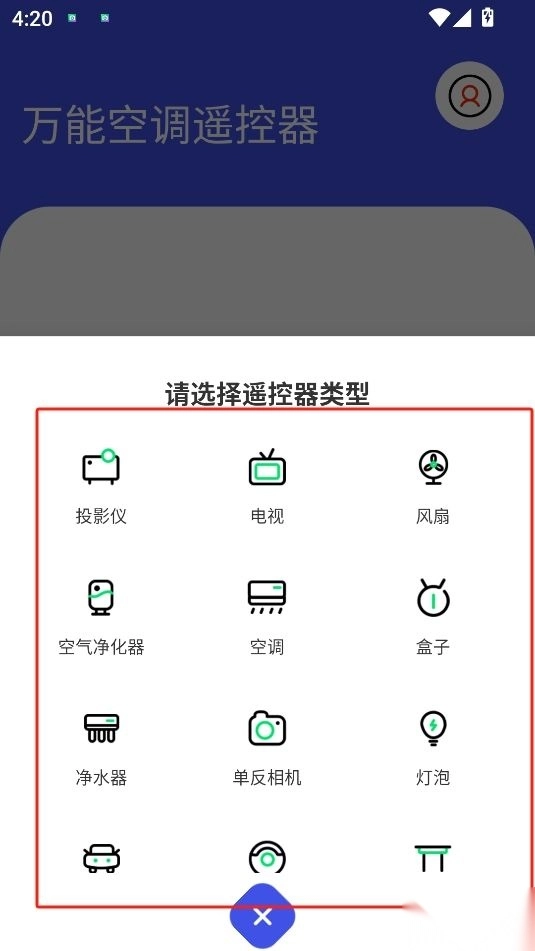 选择遥控器需要控制的设备类型
