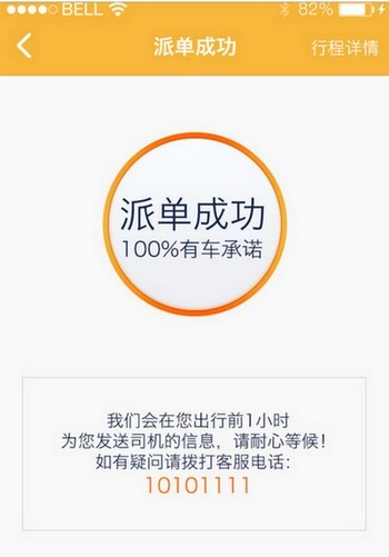 4、提交需求后,大概两三分钟就能收到手机消息,消息中会显示司机电话与车号。