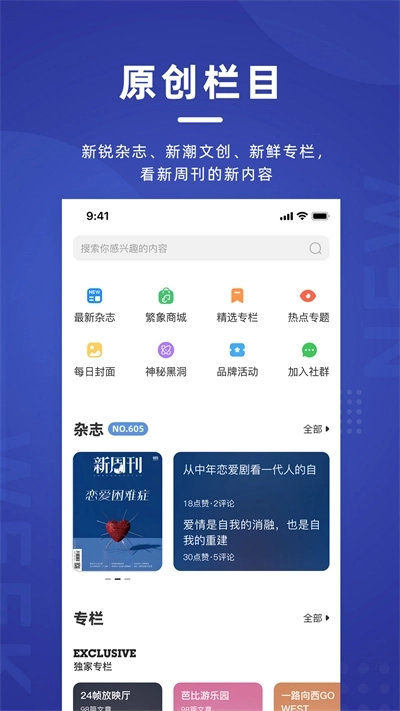 新周刊是一款融合杂志阅读、新闻资讯与文化活动的综合型软件。它功能多样且操作便捷,不仅提供《新周刊》杂志的电子版阅读服务,内容覆盖社会、文化、生活方式等多个领域;用户还能浏览最新文章、参与互动交流,同时获取深度报道与专题策划内容。另外,软件还包含视频内容、音频课程等多媒体资源,致力于为用户打造一个全面的阅读与学习平台,感兴趣的朋友们不妨赶紧来体验一番!