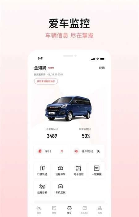 让你能随时管理好汽车,还配备了爱车监控功能,方便你清晰查看车辆状况。