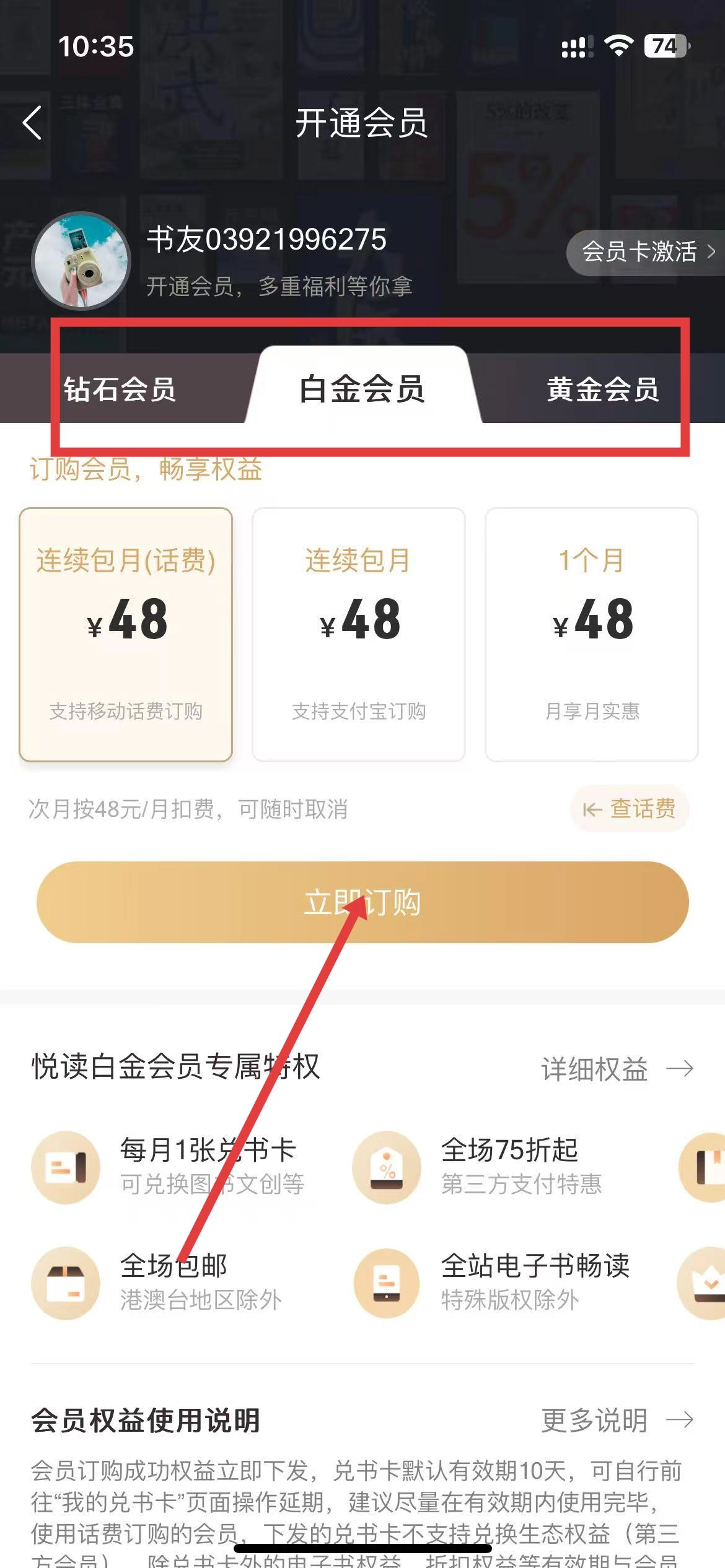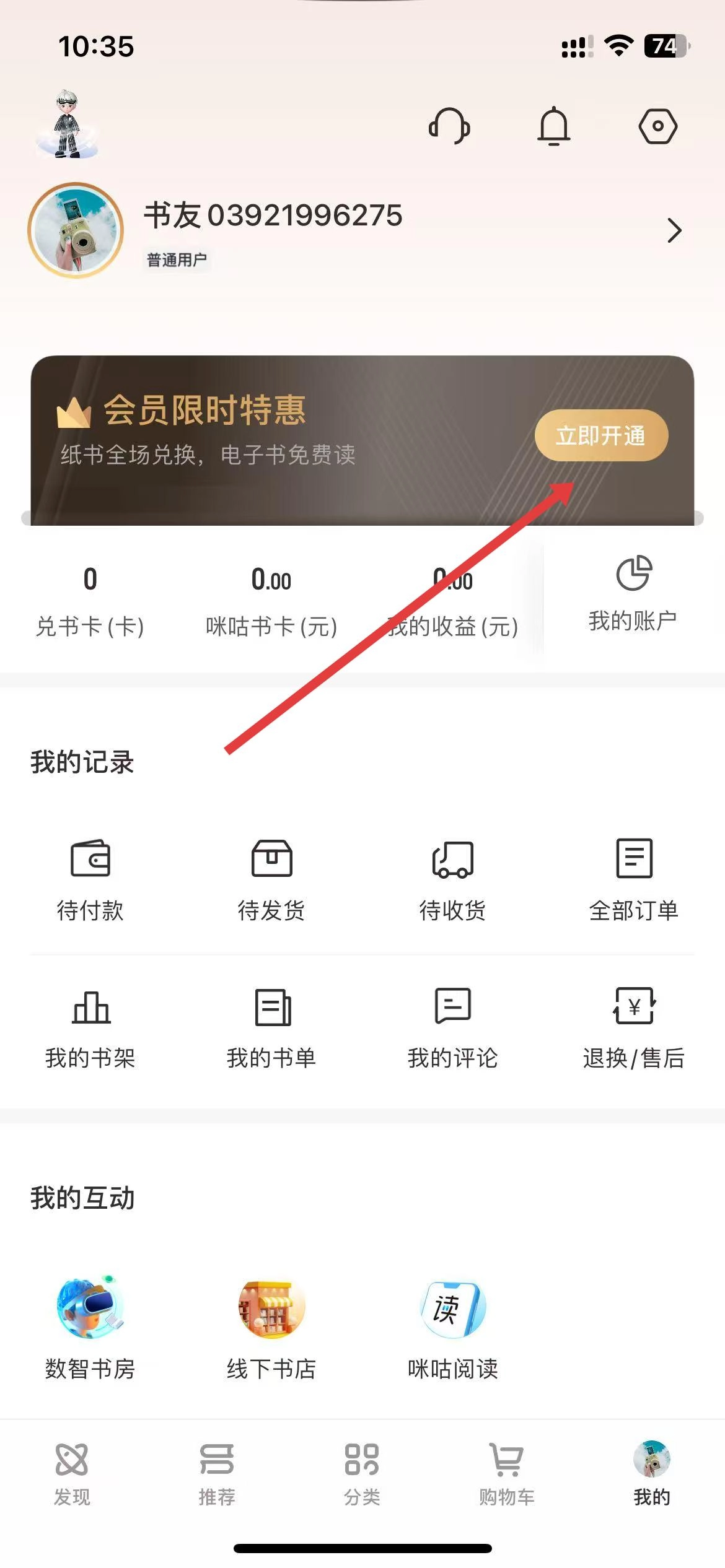 咪咕云书店怎么购买会员