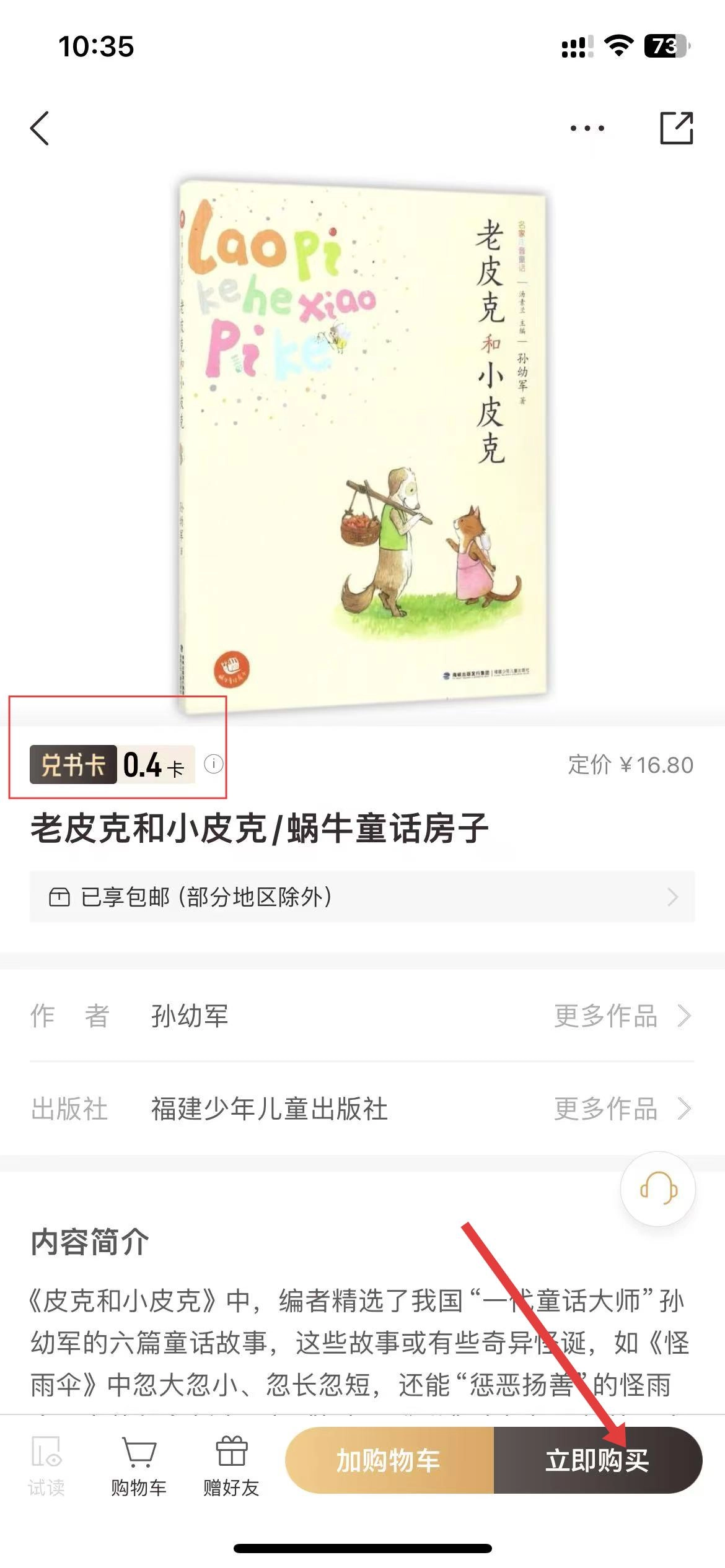 4、选择要购买的图书,使用【兑书卡】点击【立即购买】按钮,进行图书购买操作。