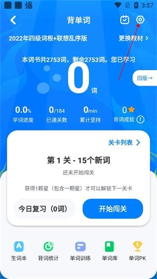 1、 进入可可英语当中,选择首页的“背单词”;