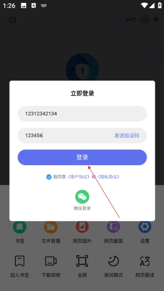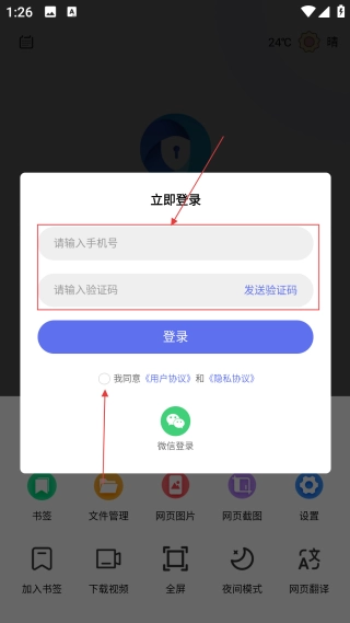 3、在登录弹窗里,填写手机号与验证码,并勾选协议选项。
