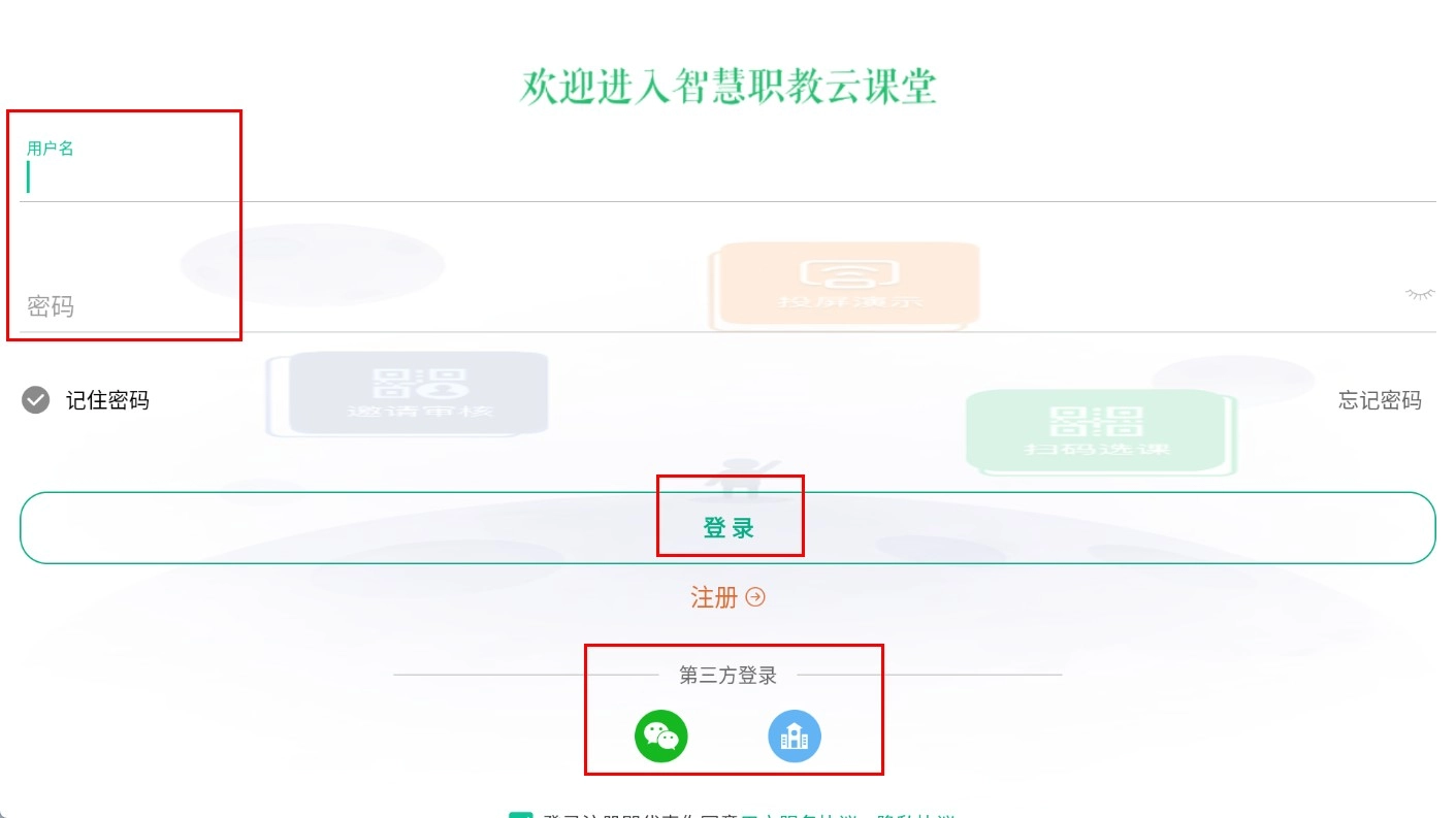 2、在登录页,填写【用户名-输入框】与【密码-输入框】信息,可选择第三方登录方式。