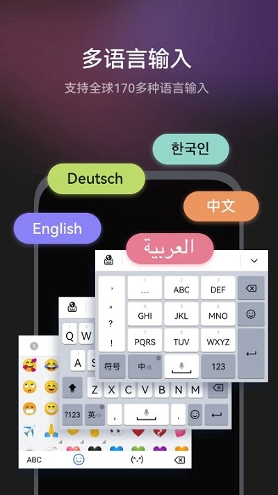 【键盘布局】对不同的语言,为用户提供了不同的键盘布局,让用户以最舒适的方式输入。