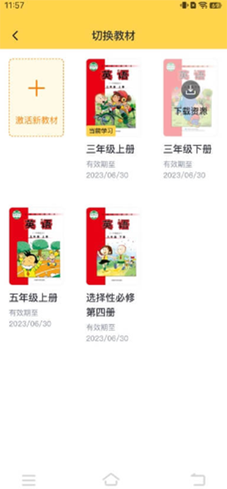 点击已激活的教材封面,能够将该教材切换为“当前学习”教材。