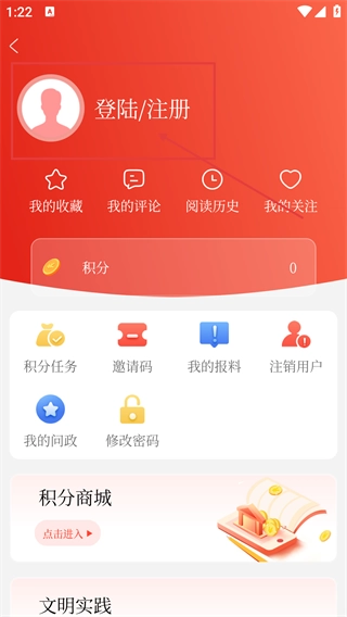 1、在【河沁融媒】首页,点击右上角的头像图标,可进入对应页面,为后续登录/注册操作做前置准备。