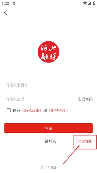 3、在登录界面,点击【立即注册】选项,即可进入账号注册的信息填写页面。