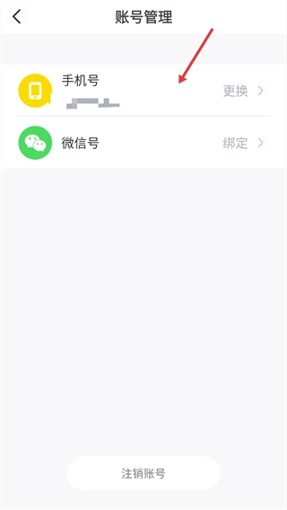 1、在账号管理页面,找到【手机号】选项右侧的“更换”按钮。