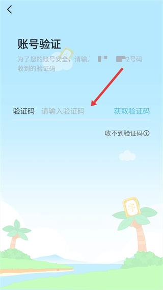 3、在账号验证页面,输入收到的验证码。