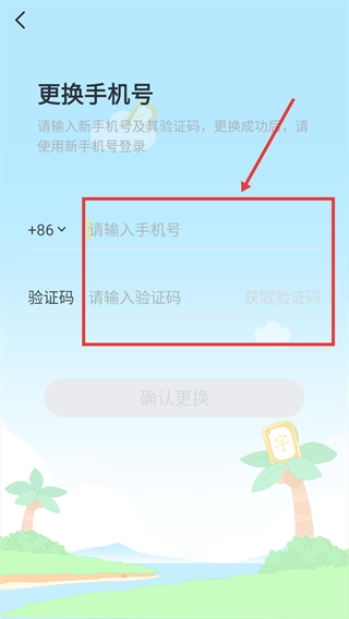 4、进入更换手机号页面,输入新手机号,获取并填写对应验证码,完成更换操作。