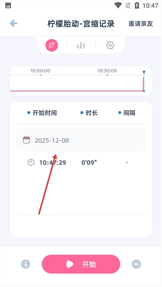 2、进入宫缩记录的准备界面后,点击底部的【开始】按钮,即可启动记录功能。