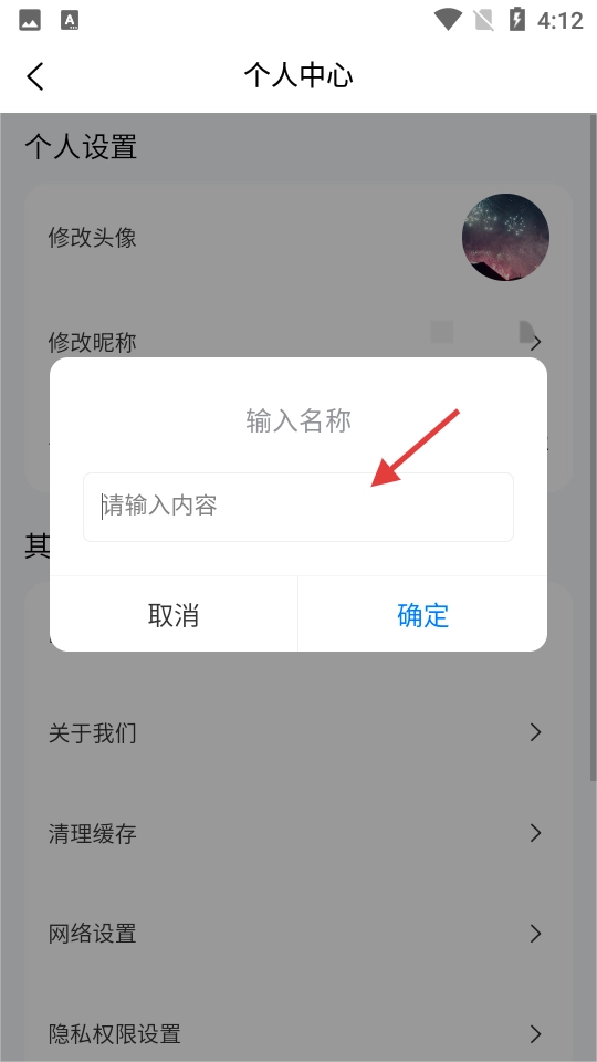 3、进入个人中心页面后,点击【修改昵称】选项,系统会弹出用于输入新名称的弹窗。