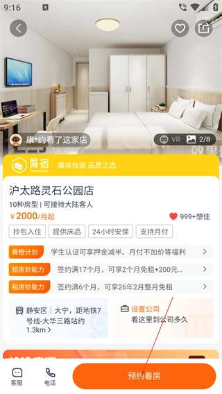 3、在房源详情页,点击【预约看房】按钮,即可进入预约信息填写页面。