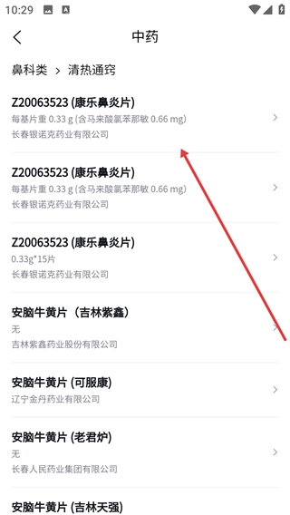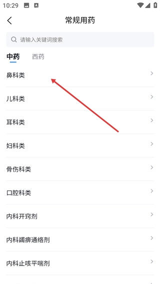 3、在常规用药页面点击【鼻科类】选项,进入中药鼻科类页面。