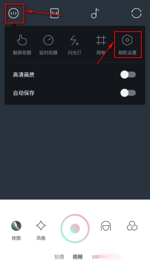 点击左上角的【111】按钮,随后点击【相机设置】选项。