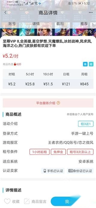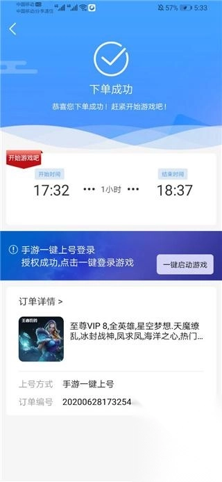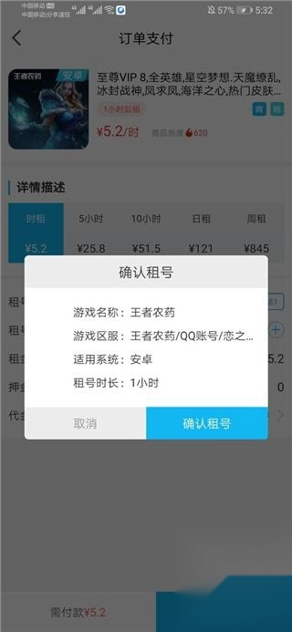 第三步:租用订单信息界面以及申请授权上号按钮