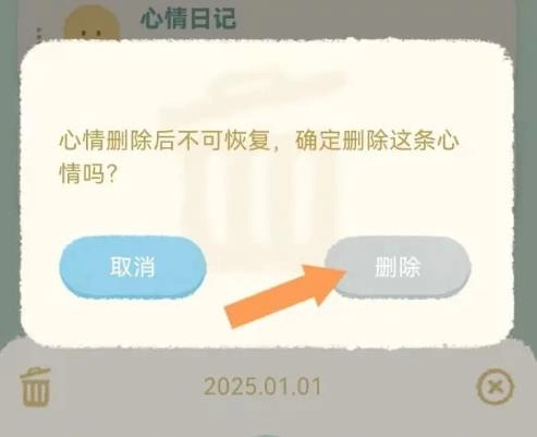 打开心情日记删除提示页面,点击删除就行了