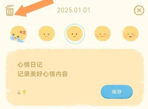 打开心情日记内容编辑页面,点击删除图标