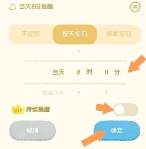 打开提醒页面,编辑按天设置的提醒时间内容,接着点击开启“持续提醒”的小按钮,最后选择确定选项即可。
