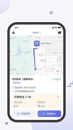3、借助地图,能清晰直观地查看周边换电站,点击换电站,一键导航即可轻松抵达。