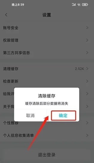 2. 寻找到【清理缓存】。