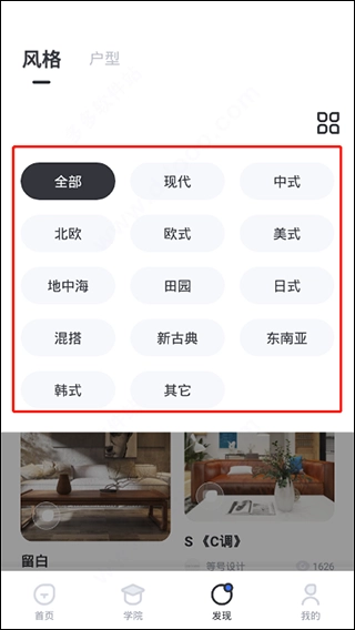 另外,在“发现”模板里能浏览到各种各样的装修设计案例,有助于进一步拓宽你的视野。