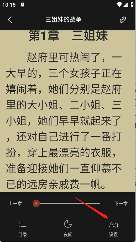 点击进入你想看的小说后,轻点屏幕任意一处,接着点击“设置”选项。