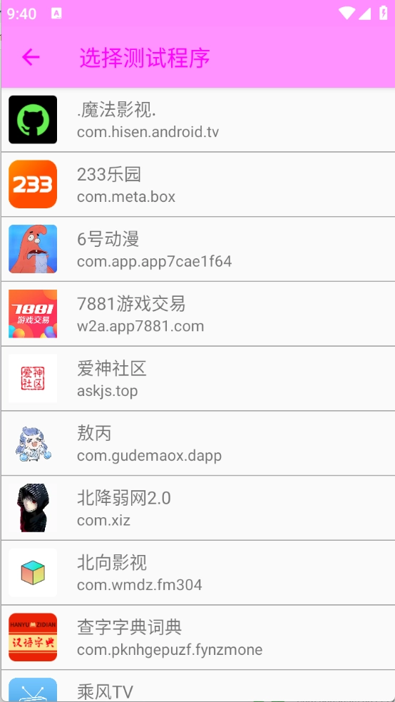 选择要测试的应用。