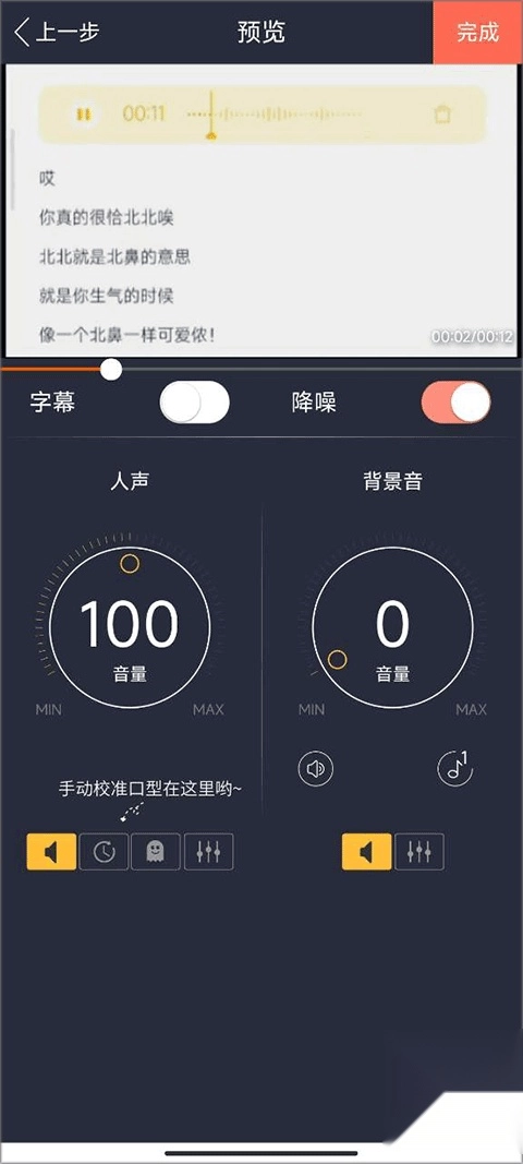 3、保存之后你可以进行对杂音的调整,最后点击右上角的完成