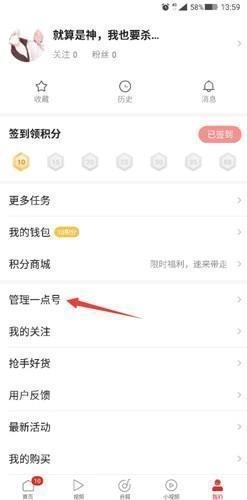 在【我的】选项中,找到【管理一点号】。