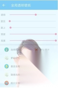 2. 从手机本地相册选定想要设置的透明壁纸后,大家还能借助进度条来调整它的透明度,以及方向、宽度、高度这类状态参数。