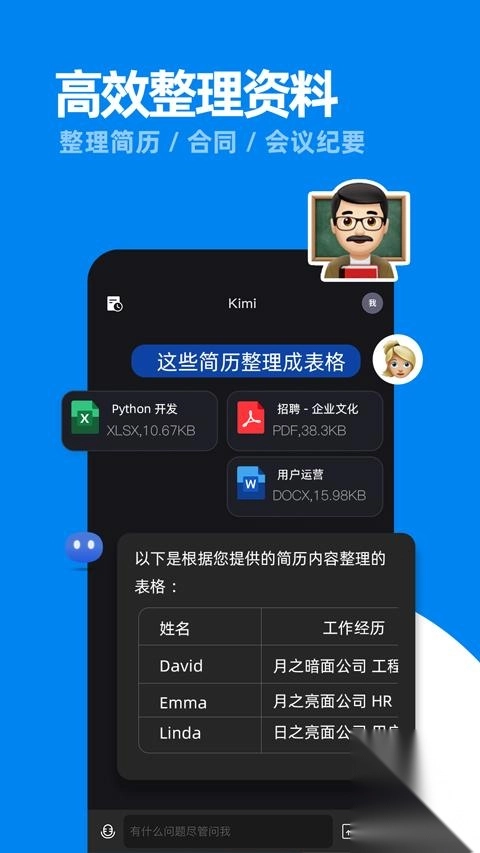 处理各类数据时,不管面对的是数量庞大、堆积成山的发票,还是内容复杂、篇幅冗长的会议纪要,Kimi都具备智能识别与整理的能力,能够自动提炼其中的核心重点,从而让原本繁琐的数据整理工作变得轻松高效,各类信息也能清晰呈现、一目了然。