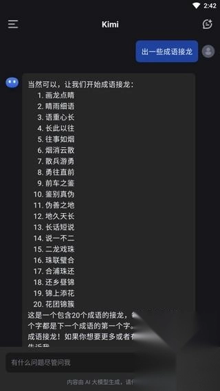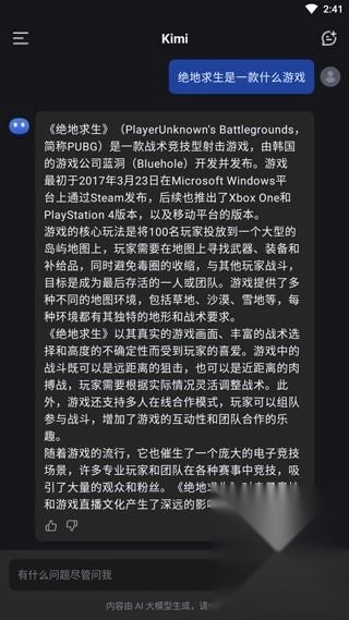 Kimi智能助手是一款功能强大且使用便捷的AI智能助手软件。它为用户提供了资料整理、文案与代码生成、PDF快速阅读、智能搜索等多种实用功能,能够有效帮助用户提升工作和学习的效率。当用户在生活中遇到任何难题时,都可以通过对话的形式向这款软件的AI发送问题,以获取解决办法,是一款非常值得使用的工具。有需要的朋友们,欢迎在本站进行体验!