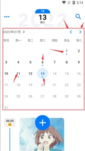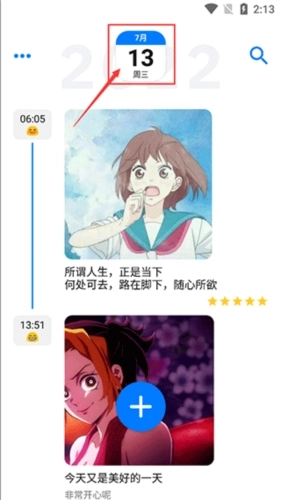 【切换日期】底部的按钮不仅能添加日记条目,拖动它还能快速切换日期,让你轻松实现时间旅行。