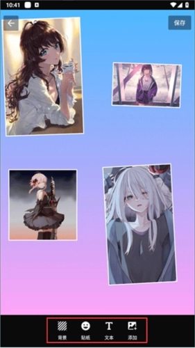 5、也可以单击背景,对背景进行更换、添加贴纸、文本等操作;