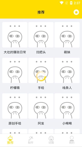 3、拥有海量表情包素材,各类鬼畜表情、动画表情贴纸应有尽有,可以满足你的制作需求;