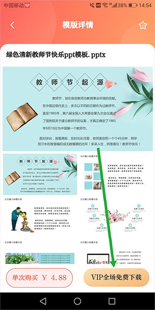 也可以直接进入模板的详细页面,然后点击页面底部右下角的【VIP全场免费】按钮。
