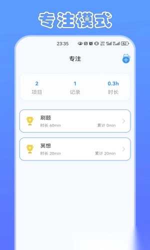 会记录每日专注数据,生成统计报告
