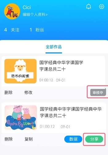 在完成作品的创作与发布后,你可以前往“个人中心”页面查看该作品的审核进度。需要注意的是,只有当作品通过审核后,才具备分享给他人的权限。若作品已成功通过审核,你只需点击作品对应的分享按钮,系统便会跳转至微信分享界面,此时选择你希望分享的微信好友或群聊,就能完成分享操作。