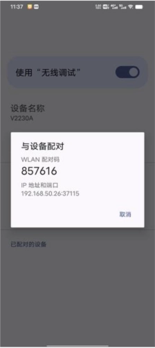 向下滑动手机顶部的通知中心,输入配对码后,点击小三角形图标来展开完整的对话框。