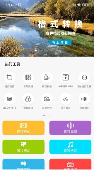 视频格式转换工厂手机版是一款非常实用的掌上视频格式转换软件,用户可通过该软件轻松地将视频文件转换输出为MP4、AVI等视频格式,且支持自由调节的视频的输出参数,多个功能板块可供用户自由选择,满足用户的多元化使用需求,有需要的小伙伴快来体验吧。