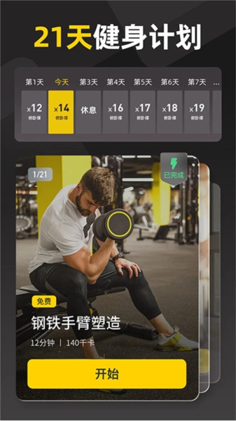 硬汗健身是一款优质的运动健身服务软件,致力帮助用户更轻松的锻炼自己的身体。软件有着丰富的运动课程,覆盖hiit、无氧、增肌、瑜伽、马甲线、腹肌等,用户可以根据健身目标来选择课程,跟着视频里的教练一起健身。只要坚持下去,肌肉就会慢慢练出来。它以“0基础0门槛”为设计理念,致力于为用户提供方便、快捷的健身服务,让用户无论何时何地、有无器械、有无健身经验,都能轻松开练。硬汗健身会根据用户的身体情况量身打造专属于用户的减脂或增肌健身计划,用户只需输入身高、体重、年龄等基本信息,以及个人的健身目标和时间安排,软件就能为用户生成个性化的健身计划。这种智能化的服务模式使得用户能够更加科学、有效地进行健身锻炼。除了AI智能健身计划,硬汗健身还提供了一键开练功能。用户只需选择合适的健身时间,点击“开始”按钮,即可立即开始健身锻炼。这种简单易用的操作方式使得用户能够快速进入锻炼状态,提高了健身的效率和便捷性。