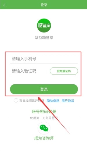2、输入手机号码并获取短信验证码,完成登录验证步骤后,就能顺利进入软件内部。